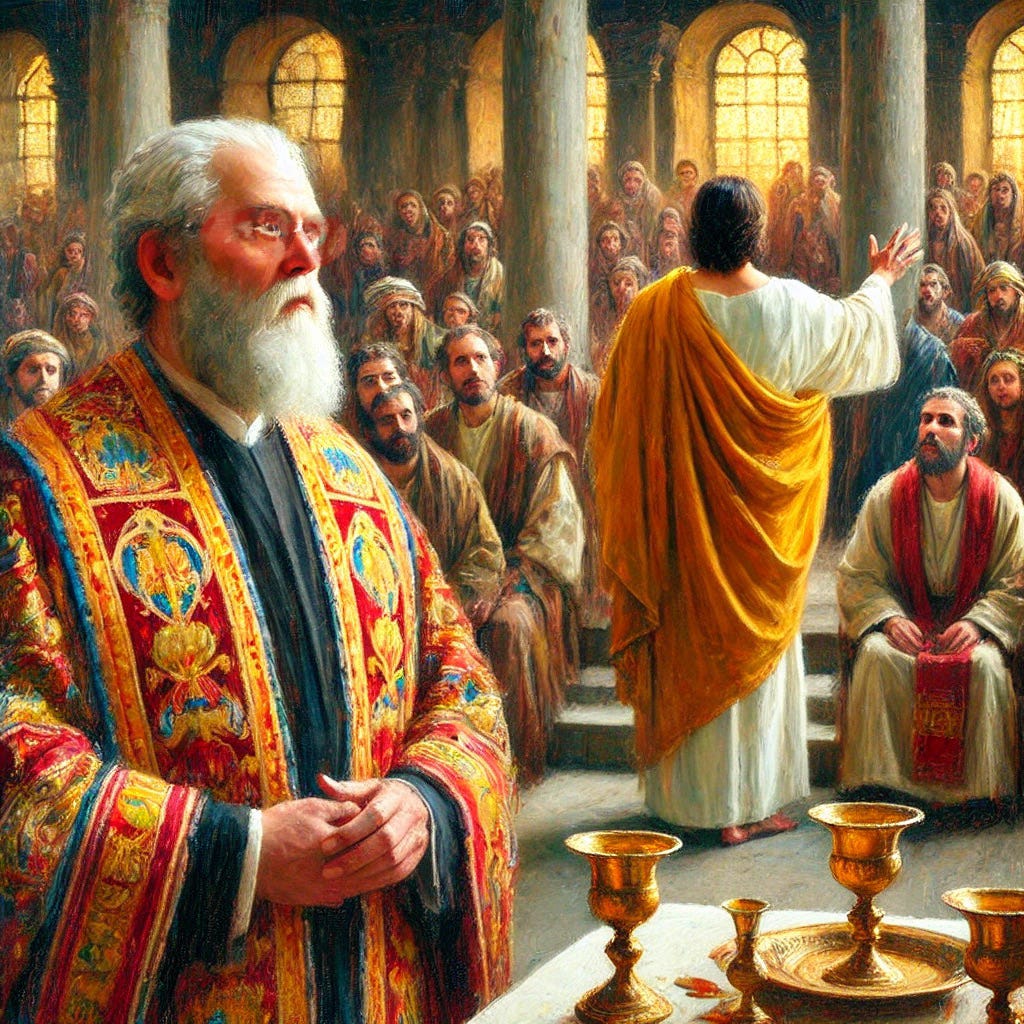 “I watched from my place of honor, observing the rituals we had carefully preserved for generations. The feast was sacred, the day holy, and yet there He stood, disrupting everything with His reckless words. “Living water.” It was blasphemy, pure and simple. How dare He suggest that He, this man from Galilee, could provide what only God can? But even as I felt the anger rise in me, I could see the people turning toward Him, their faces filled with something I couldn’t quite place. Hope, maybe. I had to stop Him before they all believed Him. ”
